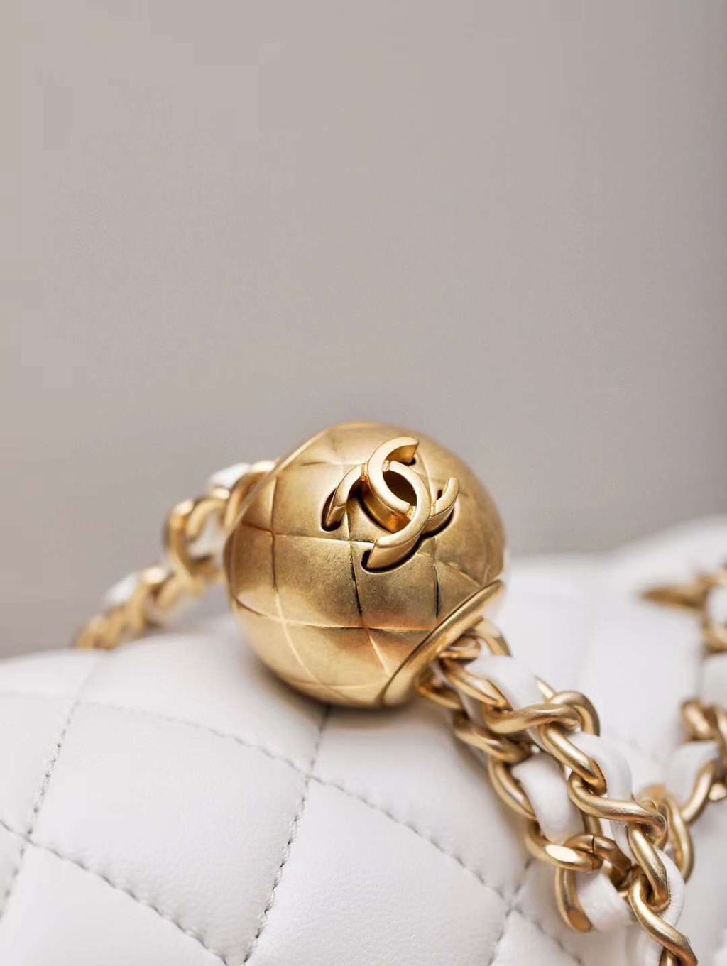 • CHANEL 24S 經典CF金球方胖子 白色羊皮口蓋包 17:2022
