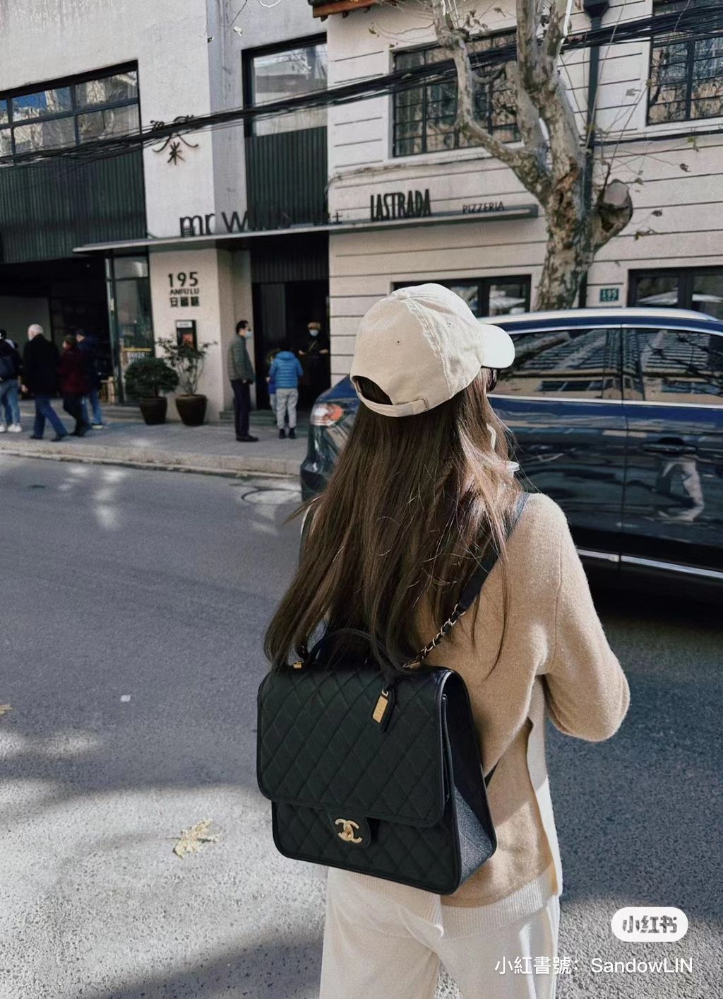CHANEL 22K 小球紋牛皮雙肩後背包