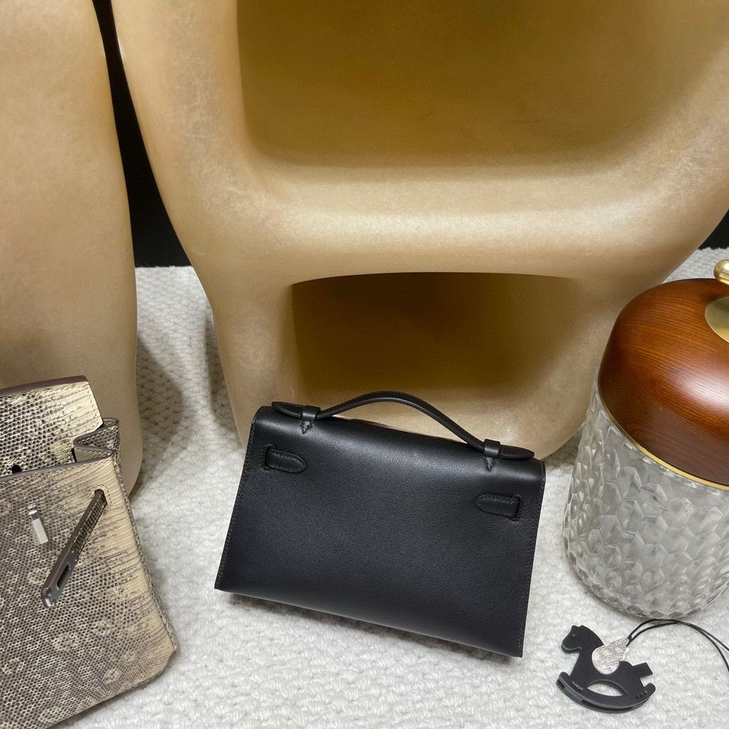 HERMES MINI KELLY POCHETT 一代手拿包 SWIFT皮 89 黑色 銀扣