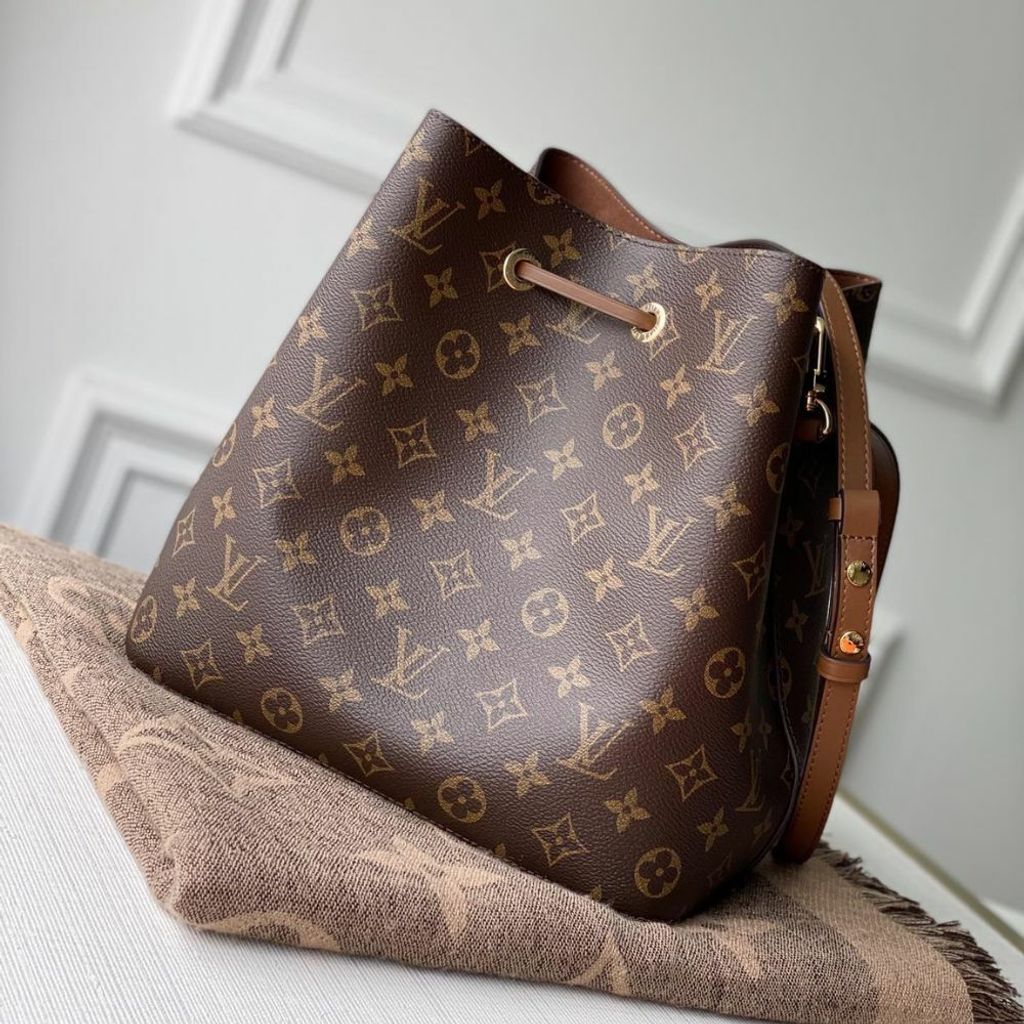 這款NéoNoé水桶袋重現了1932年Gaston-Louis Vuitton的設計,絕對是品牌的經典之作。水桶袋原是為了攜帶香檳而設計的時尚款式,而這個全新現代設計以Monogram帆布製造,外型時尚,綴以色彩鮮艷的皮革飾邊及同色黏合式襯裡,而可調節長度的肩帶可作肩背或斜背攜帶。